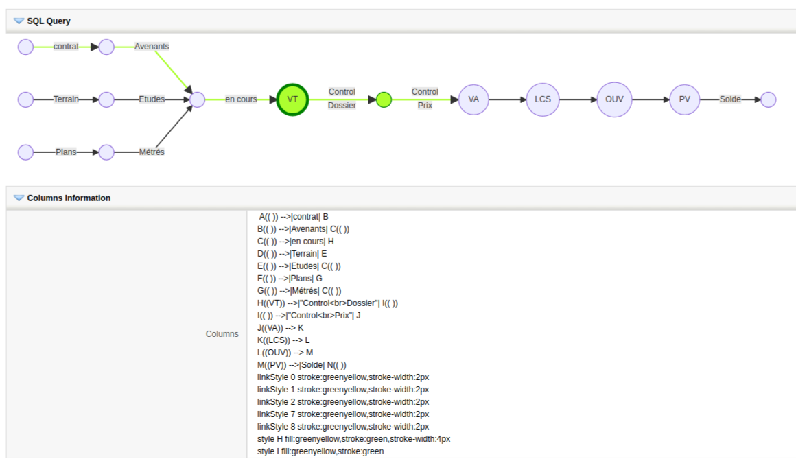We can also use a more advanced property definition to establish node and link styling that can be determined depending on the context of the record we are showing the graph in. This functionality is based on the ModTracker extension. Once ModTracker is tracing the changes in a module, the graph can receive a list of all the transitions a field has gone through and we will be able to style each node and link depending on the path followed by the record.