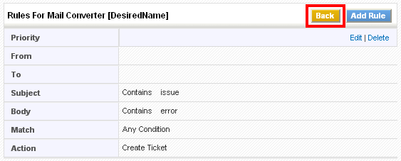 Click the Back button after setting rule or rules.