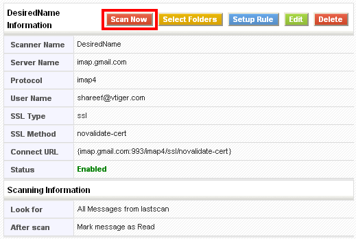 As soon as scanning is finished you will get changes according to the rules you have set for creating and updating Trouble Ticket or adding an e-mail to Organizations or Contacts.