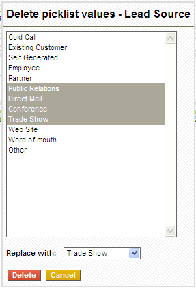 Deleted picklist values will be replaced with another value. The information stored in deleted values will be moved to newly defined value.
