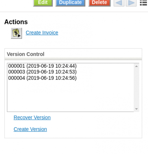 That's even easier. Now you have the developers block in the DetailView of the module and you have two links: Create Version and Recover Version. The first is used to create a new version of the record and save it while the second recovers an older version. It means that it sets an older version of the record as the active one. You can double click on the version you want to recover too.