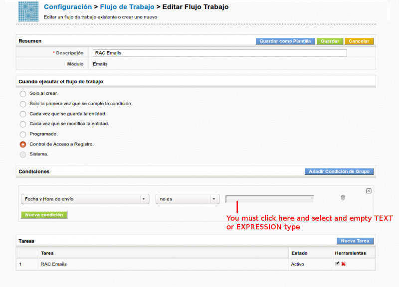 If the condition is a ConditionQuery, the SQL will be executed with only one parameter, which is the CRMID of the Record launching the Record Access Control, if it is a ConditionExpression it will be executed with the full set of fields of the Record launching the Record Access Control. The CRUDS settings contained inside the <condition>