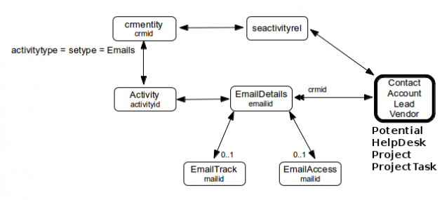 In this page you will find some basic information about the internal database structure and the relations between the entities and the tables.