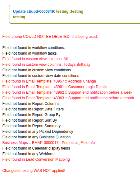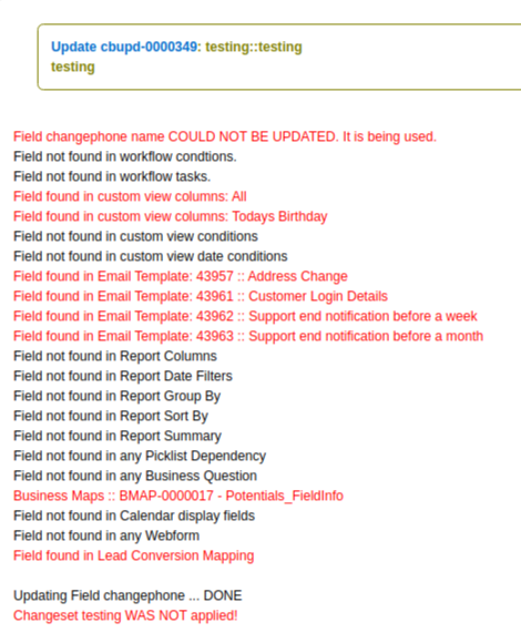 As you can see, coreBOS lists the places where it found the field so you can adapt them and apply the changeset again.