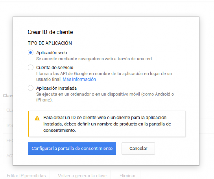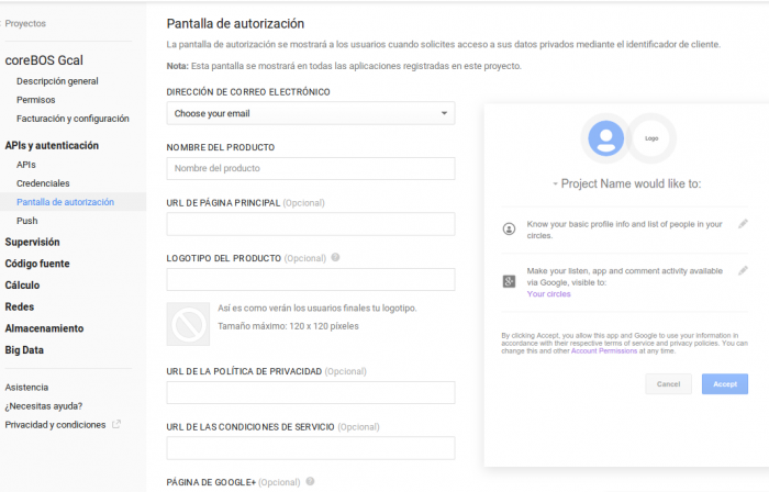 6.- For permit you to create this Client ID , you have to set the values for you Authoritation Screen.