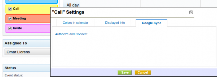 12.- Now your configuration is done, and the rest of users just have to access to their Calendar4You , try to add a google calendar to a event type and in the first time they will see the famous Authorize and Connect link.