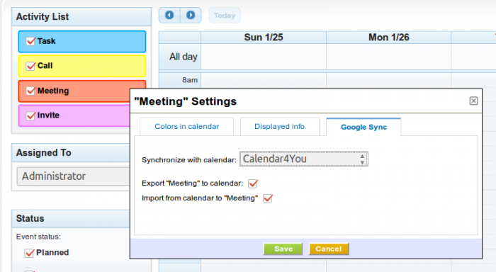 We implement this approach so it is easy to define which events should be imported to and from Google. It is also suitable in case you don’t need to synchronize your activities with Google anymore and you want to deactivated it.
