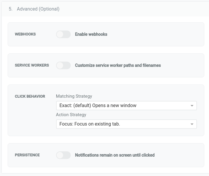 - Leave the Webhooks, Click Behavior, and Persistence in the advanced options at their default