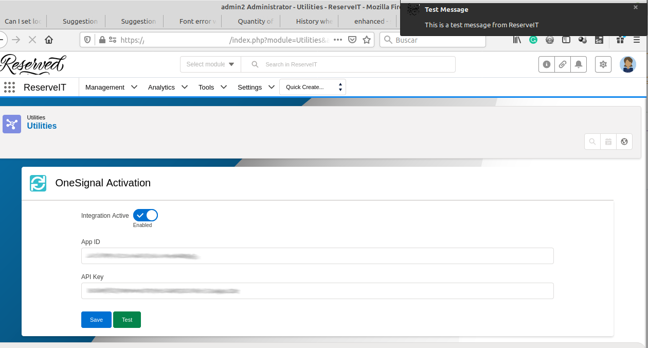- Go to Keys & IDs: copy them into coreBOS settings (index.php?action=integration&module=Utilities&_op=getconfigonesignal) and activate the integration