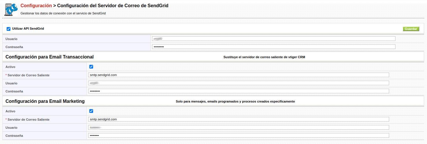 There are two ways to configure SendGrid in coreBOS, one is using it as a normal SMTP server and configure the settings in the Outgoing Email Server, the other is using the integration.
