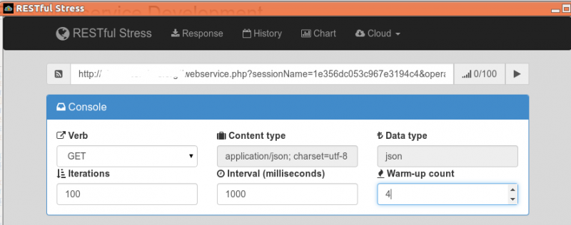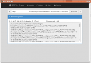 Using the very useful RESTful Stress Chrome application I ran a set of test on some of the webservice interface functionality.