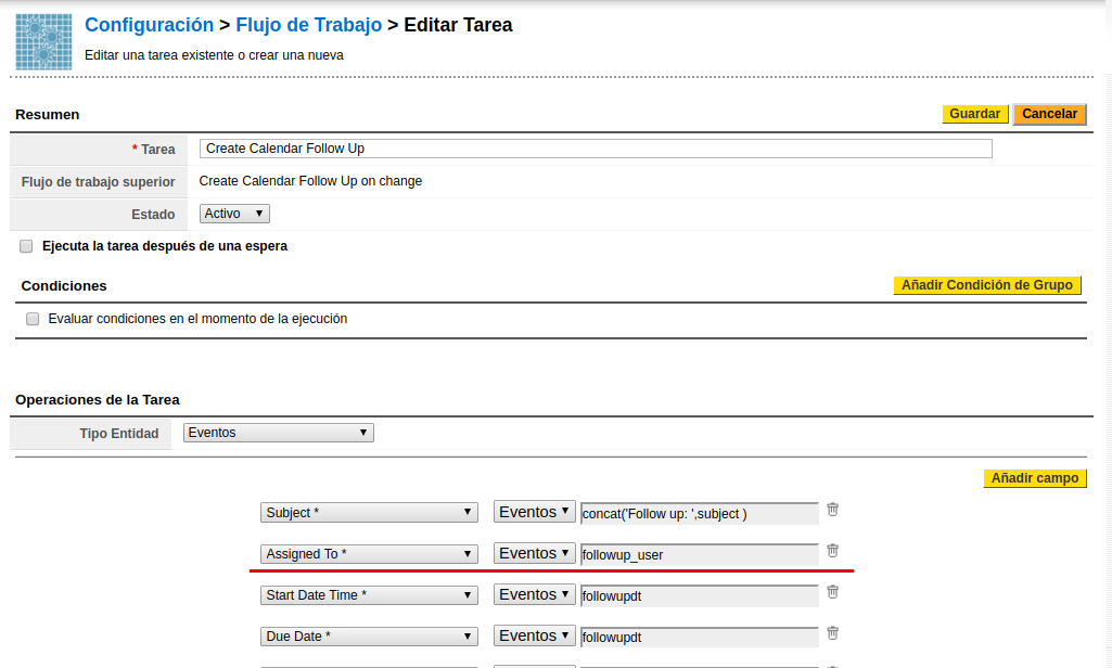 This enhancement is a coreBOS Updater changeset which adds a user picklist to the calendar records Follow-up block. That will permit you to select a user for the follow-up record.