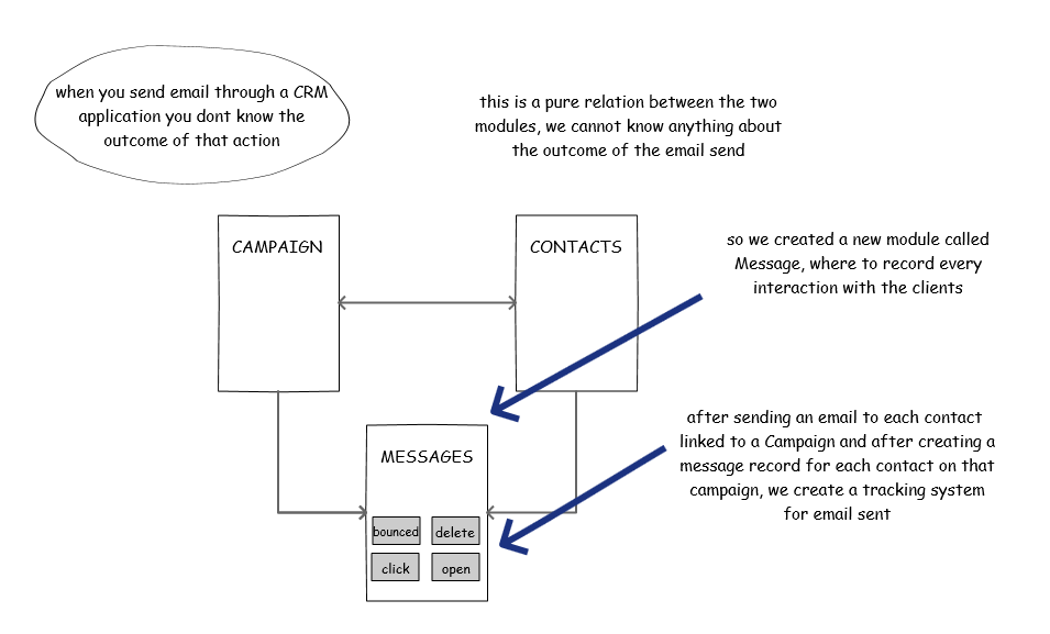 First we add a new module called Message where we can record every interaction with the client and its outcome.