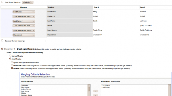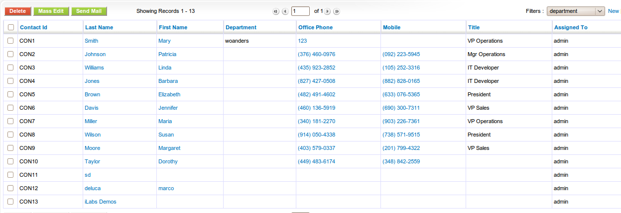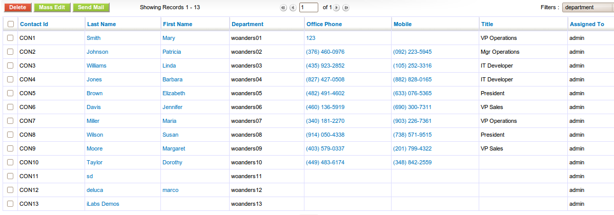 First Name | Contact Id | Last Name | Mobile | Lead Source | Department |