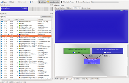 From the very beginning of the coreBOSCP project speed was an enormous problem, to the point where even the normal code-test-debug process was impractical. So our first optimization was to enable yii cache and use it to avoid calls to the REST interface. This was a pure gut feeling that turned out to make a big difference and make the development process acceptable. Once we had the basic functionality in place it was time to go further into profiling and speed optimizations to see if we could get it working faster: in came xdebug profiling