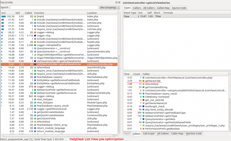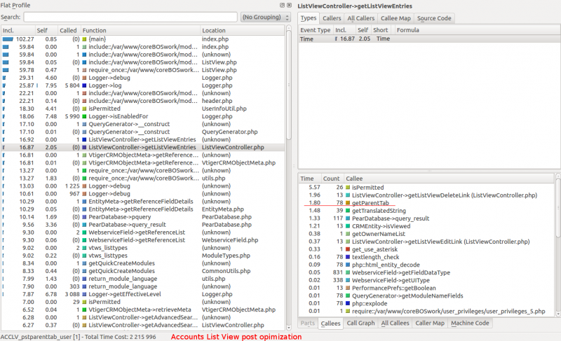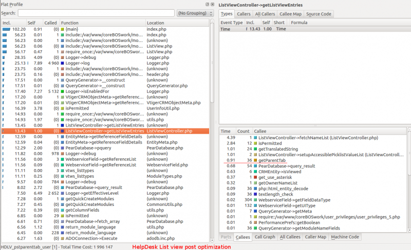 As can be seen in the images above the time spent by the getParentTab() method has been reduced significantly. This optimization won't have a big impact in the overall usage of the application, specially because we aren't optimizing the real bottle neck which is elsewhere, but all in all, every little bit helps.